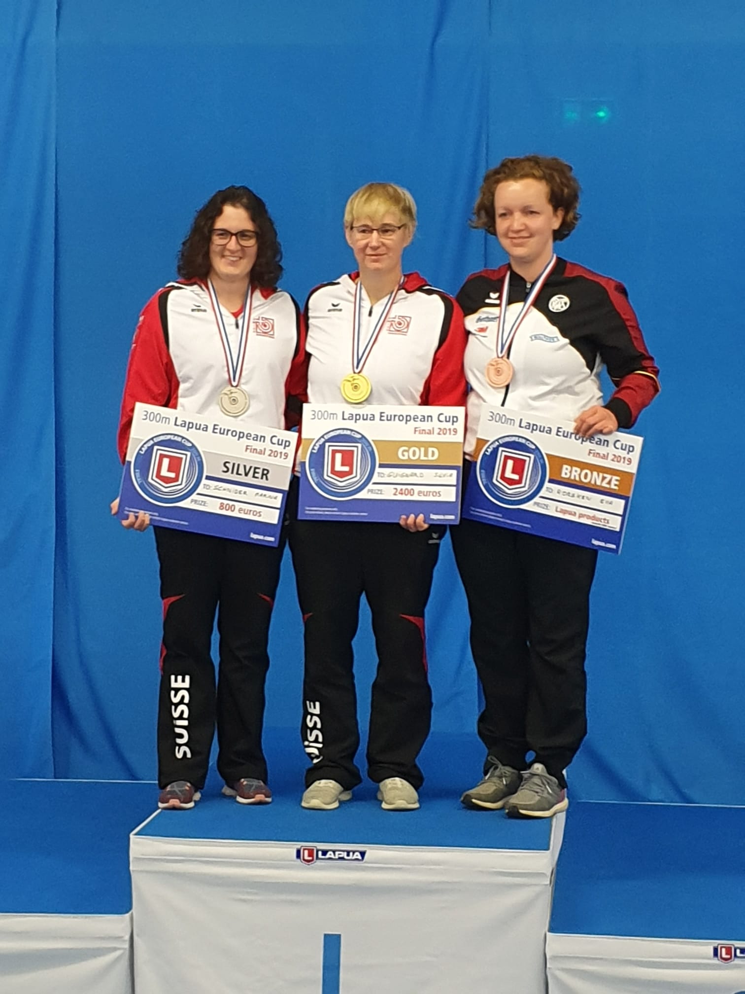 Zum Saisonabschluss präsentierten sich die Schweizer Gewehrschützinnen in Bestform: Silvia Guignard (Zürich), Marina Schnider (Ennetbürgen NW) und Andrea Brühlmann (Egnach TG) zeigten am Europacup-Final in Châteauroux (F) den anderen Schützinnen den Meister. Einzig die Deutsche Eva Roesken konnte die Schweizer Phalanx durchbrechen. Sie verwies mit 1171 Punkten Brühlmann auf den vierten Platz und durfte Bronze in Empfang nehmen. Doch an Guignard und Schnider kam Roesken nicht vorbei. Silvia Guignard zeigte mit 390 Punkten kniend, 398 Punkten liegend und 386 Punkten stehend eine starke Leistung, die mit 1174 Punkten und dem Sieg belohnt wurde. Marina Schnider hatte nach 80 Schuss 4 Punkte Rückstand auf ihre Teamkollegin. Zwei Zähler konnte sie stehend aufholen. Das reichte zwar nicht für den Sprung zuoberst aufs Treppchen. Mit 1172 Punkten fing sie aber Roesken um einen Zähler ab und sicherte sich Silber.