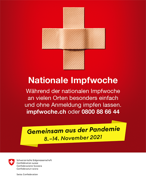 Der Bundesrat hat am 13. Oktober 2021 eine Impfoffensive mit den drei Pfeilern «Nationale Impfwoche», «Mobile Beratungs- und Impfstellen» sowie «Individuelle Information» angekündigt. Die Kampagne wird von Bund und Kantonen getragen und startet am 1. November 2021. Die nationale Impfwoche wird von 8. bis 14. November 2021 stattfinden.