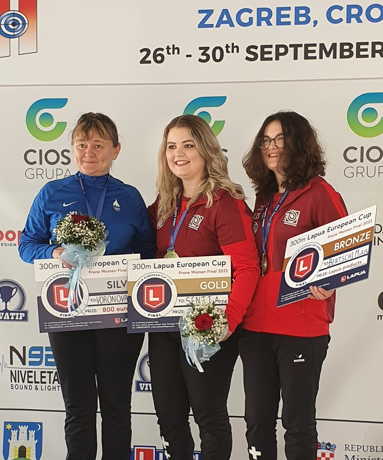 Anja Senti liess zum Abschluss des EC Finals in Zagreb kein Auge trocken. In allen sechs Serien erzielte sie das Puntemaximum. Das Total von 600-27x bedeuete den Sieg in der Kategorie Gewehr 300m liegend und einen neuen Europarekord. Die Bernerin distanzierte die zweitplatzierte Estin Anzela Voronova um drei Punkte. Eine starke Leistung zeigte Michèle Bertschi, welche 596 Punkte erzielte und sich so Rang drei sicherte. Nicht auf Touren kam Silvia Guignard, die Elfte wurde.