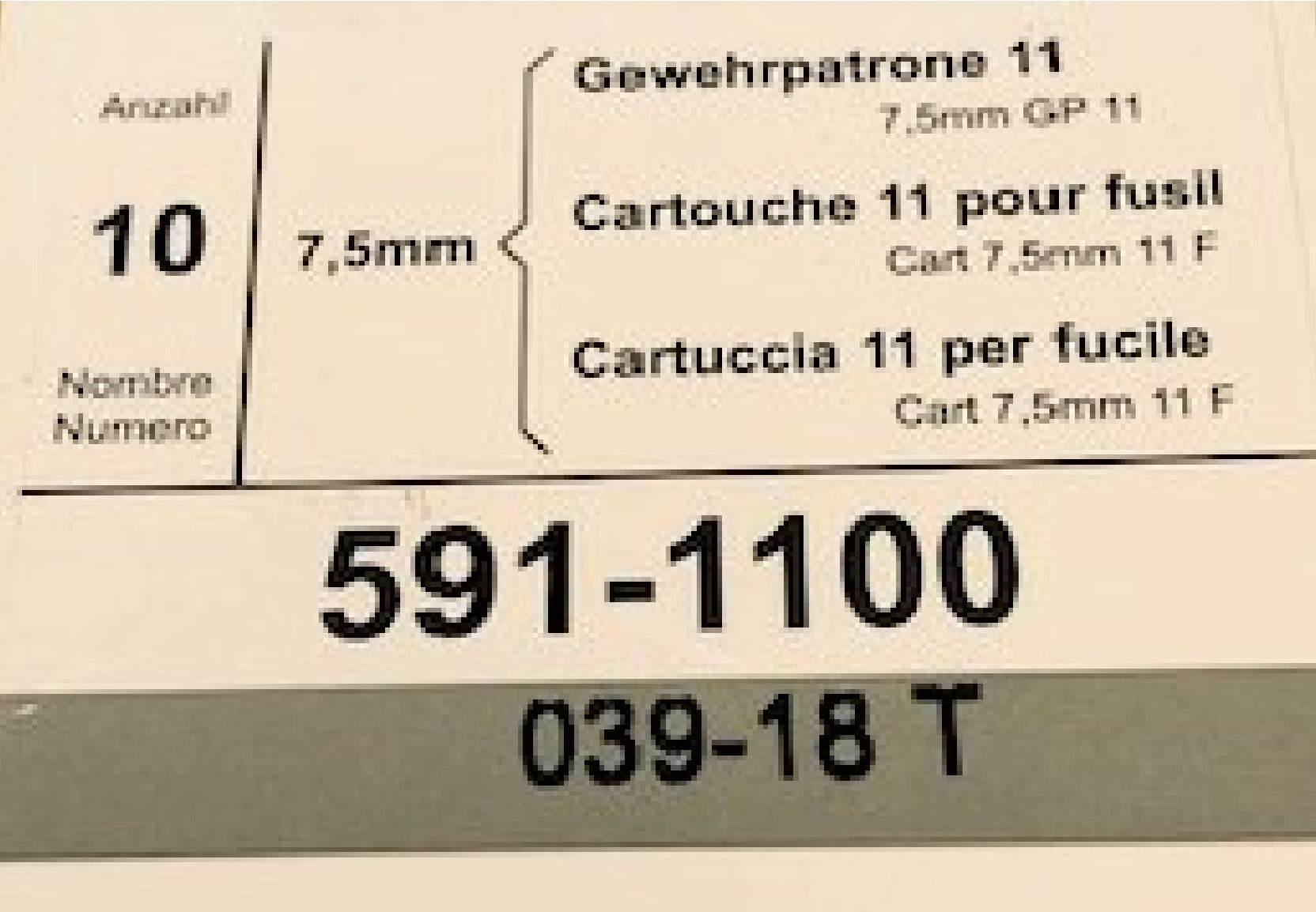 Die Gewehrpatrone 11 (GP11) wird bei Schützenvereinen mit dem in der Armee nicht mehr eingesetzten Sturmgewehr 57, mit Karabinern und Langewehren sowie mit Sportwaffen verschossen. Mit dem Los 039-18 T dieser Munition sind in den vergangenen drei Monaten vier Fälle von gerissenen Hülsen verzeichnet worden, weshalb die Munition nun gesperrt worden ist und zurückgezogen wird.