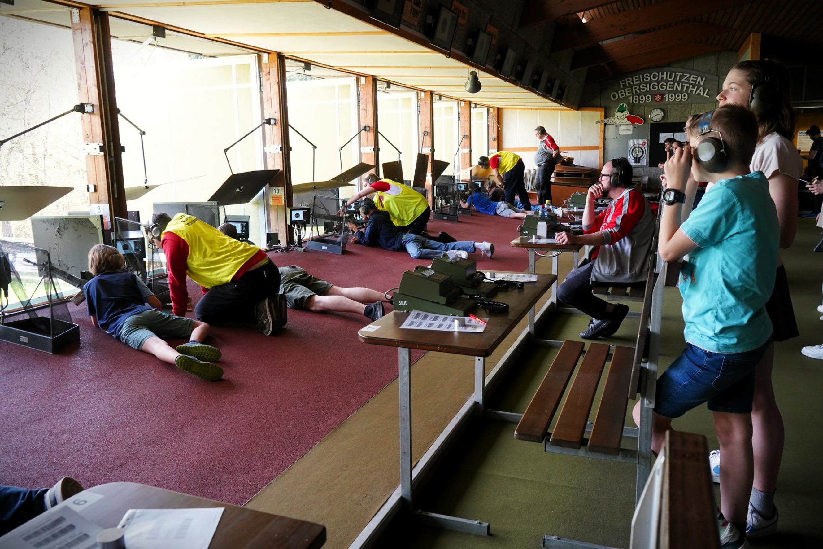 Im Aargau öffneten die Freischützen Obersiggenthal am 13. April 2024 ihre Schützenhaustore. Solche Events seien für ihren Verein wichtig, sagt Conny Füglister, die sich selbst als «Mädchen für alles» bezeichnet. «Es kommt eher selten vor, dass Interessierte einfach so vorbei kommen, um sich zu informieren. Man muss die Jungen dort abholen, wo sie gerade stehen. Wenn sie im Schulsport schiessen, kann ich bereits auf die 8-Jährigen zugehen und versuchen sie zu motivieren, dem Verein beizutreten. Dies ist aber nur vereinzelt der Fall», bedauert die Gewehrtrainerin. Deswegen nützten die Freischützen Obersiggenthal - die heuer ihr 125-jähriges Bestehen feiern – den Tag der offenen Schützenhäuser, um sich und ihre Schiessanlage «Ebne» von ihrer Schokoladenseite zu zeigen.