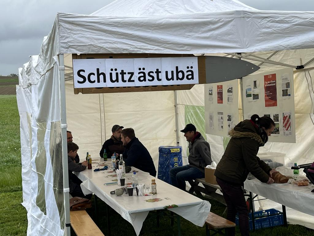 Während die Geschwister auf dem Schiessstand die ersten Gehversuche im Schiesssport unternahmen, fanden sich diverse Besucher draussen im extra aufgebauten Festzelt ein. Natascha, die Ehefrau von Präsident Marco Graf, bewirtete die Gäste, es gab Kafi, Getränke und Wurst. Der Schiessstand des Feldschützenvereins Dinhard hat keine Schützenstube – dies wurde durch die Gastfreundschaft von Natascha Graf und weiteren Verantwortlichen des Vereins aber allemal wettgemacht. Egal ob Jung oder Alt – bei den Feldschützen Dinhard fühlt sich der Besucher willkommen!