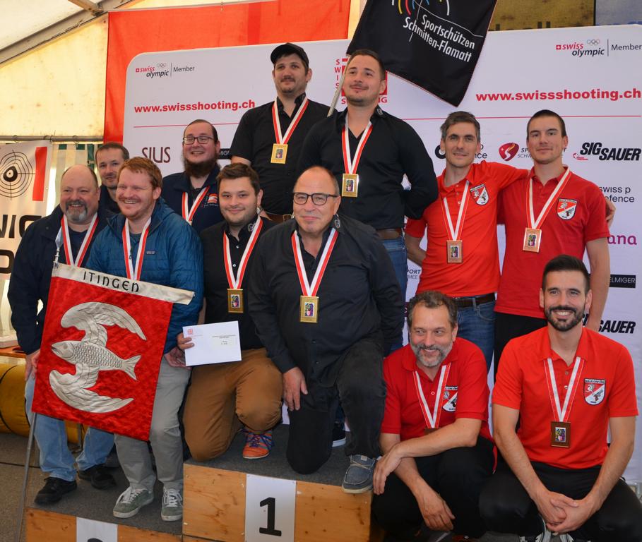 Im entscheidenden Durchgang sah es lange nach einem internen Duell der Freiburger aus. Schmitten-Flamatt lag meist hauchdünn vor Bulle-Grevîre. Als die letzten fünf Minuten der Schiesszeit verkündet wurden, sah es gar nach Gleichstand aus. Bulles Schlussmann liess sich aber durch die Zeitansage aus dem Konzept bringen und büsste noch fünf Punkte auf den Schlussmann des Kantonsrivalen ein. Das nutzte Itingen zum Aufschliessen und danke dem besseren Einzelresultat zum Überholen. Vorjahressieger Bulle feierte Bronze dennoch mit seinem grandiosen Jodelgesang, in den auch Schmitten-Flamatt einstimmte. Noch an den Freiburger Kantonalmeisterschaften war nämlich Schmitten-Flamatt von den Greyerzern geschlagen worden. Gleich mit vier Gruppen schaffte es Genf Arquebuse in die Endausmarchung. Seine Gruppe IV kam als Beste auf Rang vier.
