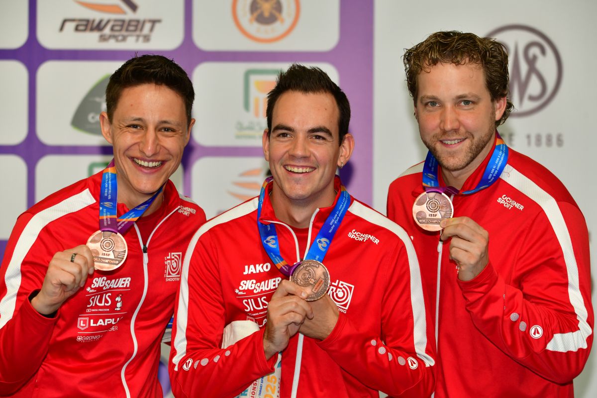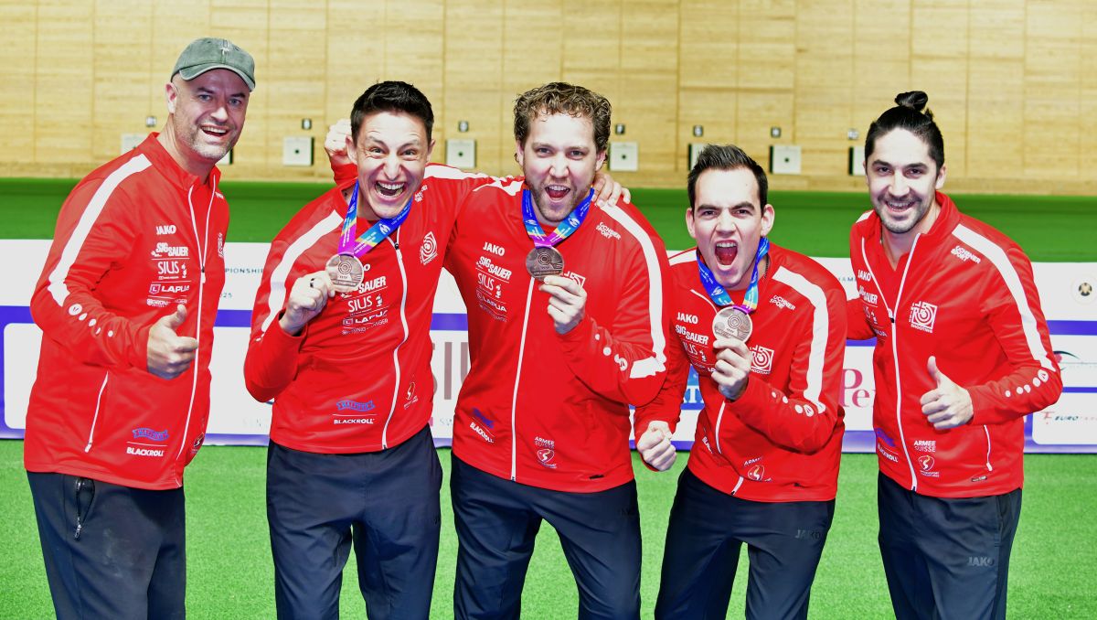 Gute Nachrichten zum WM-Start von den Gewehr-Männern: Fabio Wyrsch, Jan Lochbihler und Christoph Dürr sicherten sich Bronze in der Königsdisziplin – die erste Bronzemedaille für ein Schweizer Männerteam in einer Olympischen Disziplin.