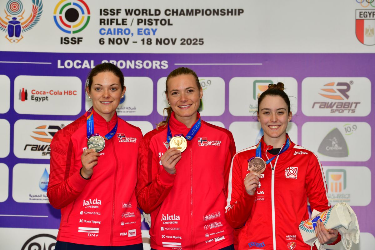 Die Gewehrfrauen doppeln am Dienstag in der ägyptischen Hauptstadt gleich nach: Im Dreistellungswettkampf sichern sich die Jäggi-Schwestern gemeinsam mit Top-Athletin Nina Christen in der Teamwertung die Silbermedaille. Für die Juniorinnen Emely (17) und Vivien (19) Jäggi ist es die erste WM-Medaille auf Elite-Niveau.