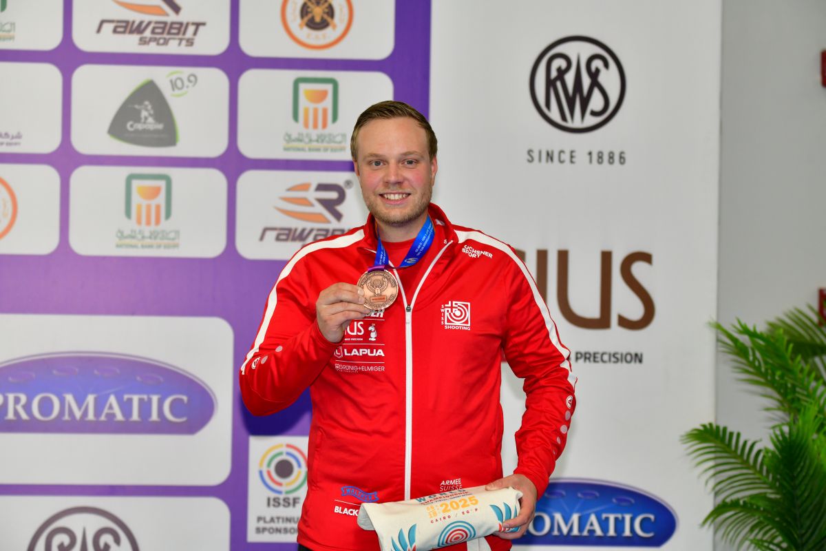 Mit nur einem Zehntelpunkt Rückstand auf Lochbihler holte sich Fabio Wyrsch die Bronzemedaille; die erste WM-Einzelmedaille seiner Karriere. «Ich weiss gar nicht, wo ich anfangen soll. Es ist mega geil. Meine erste WM-Medaille!», sagte der Gewehrprofi mit Tränen in den Augen. «Ich hatte es heute wirklich im Griff. Obwohl ich angespannt war, konnte ich viel Schwung mitnehmen. Nach einer 9.5 dachte ich kurz, das wars. Dann hat’s bei mir geklickt. Der Match brauchte viel Energie und mentale Stärke. Als ich realisierte, dass ich eine Medaille habe, haben mich die Emotionen überwältigt.»