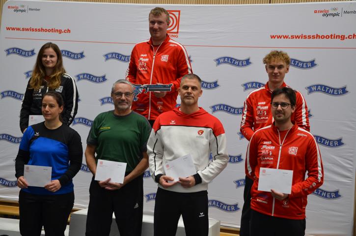 Geschossen wurde ein «Schmalprogramm» mit zwei Fünferserien in vorgegebener Zeit, dann Einzelschüsse, wobei jeweils der Letzklassierte oder die Letzkassierte ausscheiden musste, bis ein Sieger/eine Siegerin feststand. Das sorgte natürlich in allen Finals für Hochspannung. Bei der Elite Pistole begann Vorjahressieger Cédric Grisoni zwar stark baute dann aber ab und wurde von Daniela Röthlisberger auf Rang 3 verwiesen. Den Sieg sicher ins Trockene brachte Adrian Schaub. Bei den Junioren Pistole begann Samuel Thurre stark, musste die Führung nur ganz kurz an Theodor Reimann abgeben, siegte aber dann doch mit komfortablem Vorsprung.