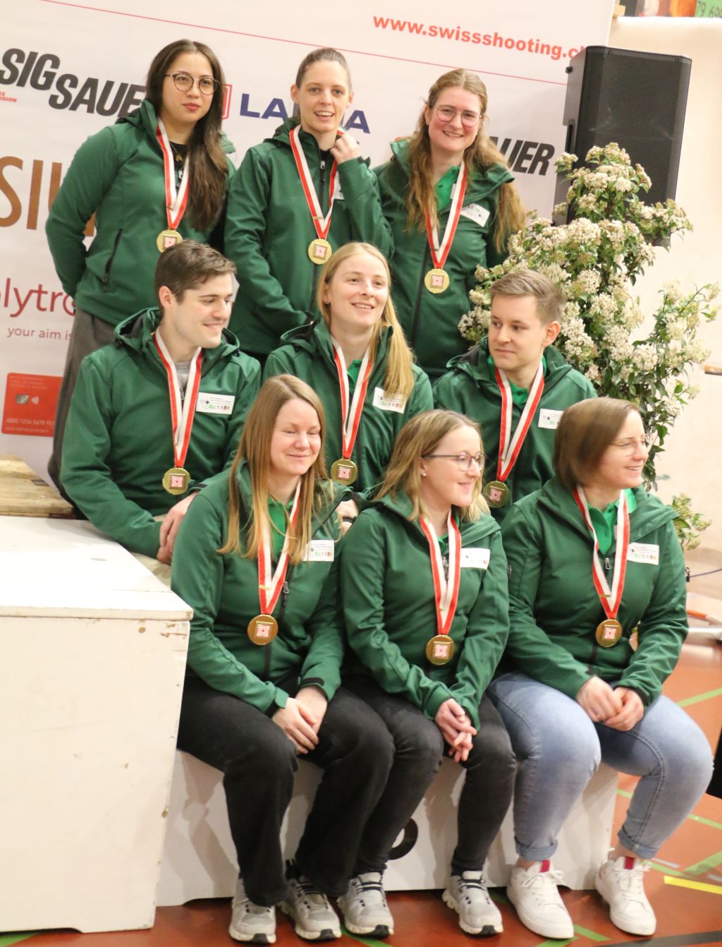 Die sieben Schützinnen und Schützen aus Solothurn erzielten am Sonntag im Verbandsmatch G10m bei der Elite in der Wankdorfhalle in Bern zwischen 628.3 und 612.8 Punkten, was einen Schnitt von 621.9 Zählern ergab. Damit setzten sich die Solothurner unter Anführung von Vivien Jäggi, Jan Lochbihler und Gina Gyger mit sieben Zehnteln Vorsprung durch vor Glarus. Dieser Verband sandte nur vier Schützen nach Bern und schoss dank zwei 623er-Ergebnissen in der zweiten Ablösung Platz 2 heraus. Sehr eng ging das Duell um Rang 3 aus: mit nur zwei Zehnteln Vorsprung (620.4 zu 620.2) holte die neun Personen starke Delegation aus der Ostschweiz Bronze. Knapp dahinter ging die Zentralschweiz, die im Vorjahr Solothurn geschlagen hatte, nun leer aus. Mit knapp drei bis gut vier Punkten Abstand folgen die Verbände von Bern, Linth und Freiburg auf den nächsten Plätzen.