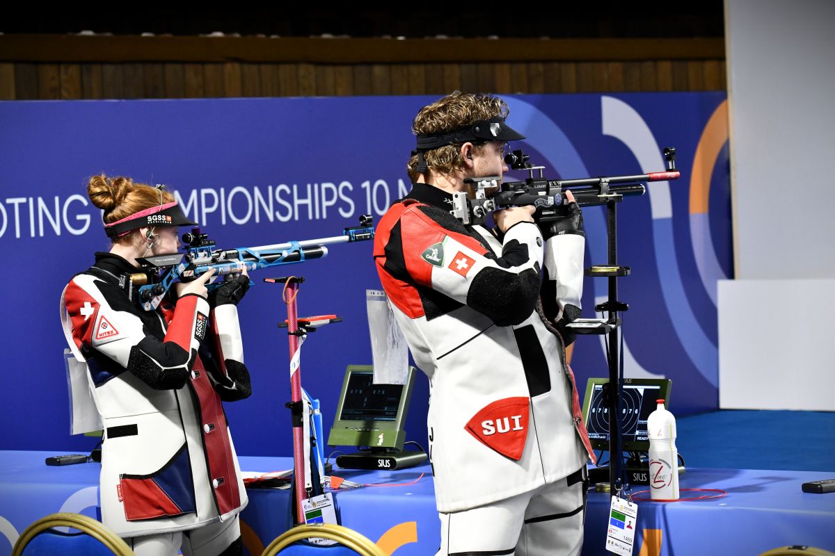 Das erfolgsverwöhnte Duo Audrey Gogniat und Jan Lochbihler konnte nicht an frühere Glanzleistungen anknüpfen. Mit 621.2 Ringen belegten sie einen der hinteren Ränge. Im Vorjahr hatten sie in dieser Disziplin noch EM-Gold gewonnen.