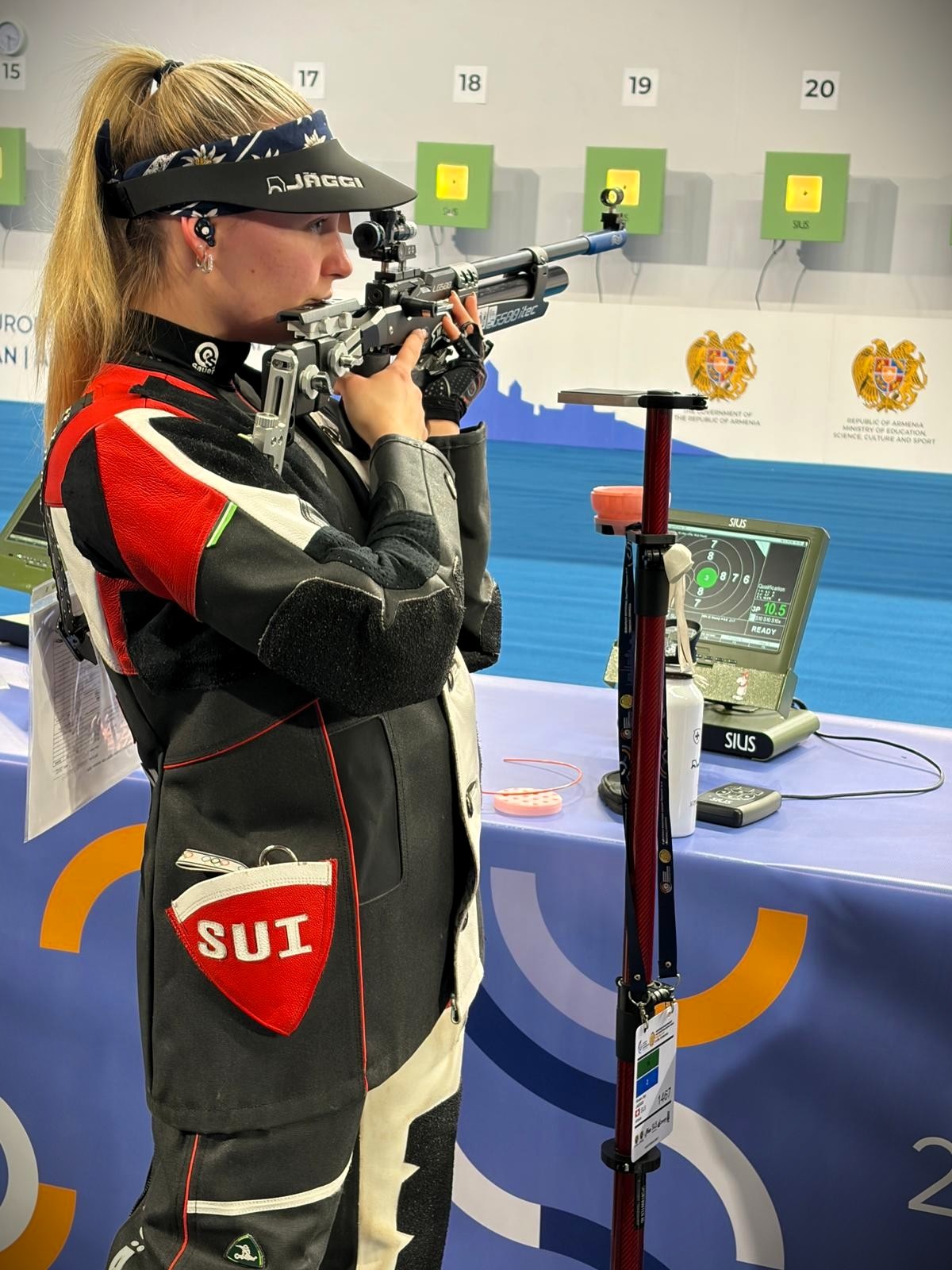 Morgen Montag stehen die Einzelwettkämpfe mit dem Gewehr auf dem Programm. Bei den Frauen treten Audrey Gogniat, Emely Jäggi und Vivien Jäggi an. Die Erwartungen sind hoch: Gogniat gewann im Vorjahr Silber, Jäggi wurde Vize-Europameisterin der Juniorinnen.