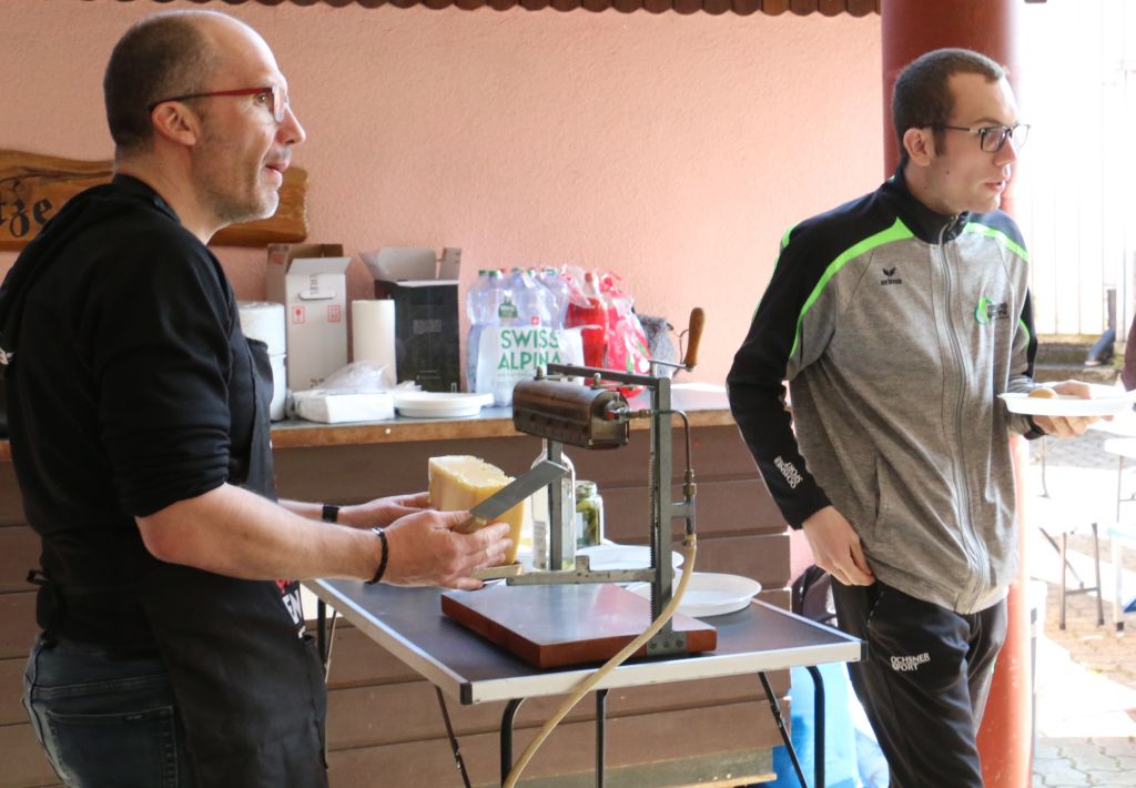 Am Rande der Einzelmeisterschaft der Juniorinnen und Junioren (JEM) P10m, die am Sonntag bei sonnigem Wetter im an der Aare gelegenen Stand im bernischen Schwadernau abgehalten wurde, fand ein kleines Volksfest statt. Veranstaltet wurde dieses von der ansehnlichen Delegation aus dem Wallis mit ihrem Raclettestand. Ein Raclette serviert erhielt von seinem Vater, der den Ofen bediente, auch Samuel Thurre aus Saillon.