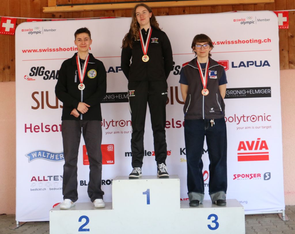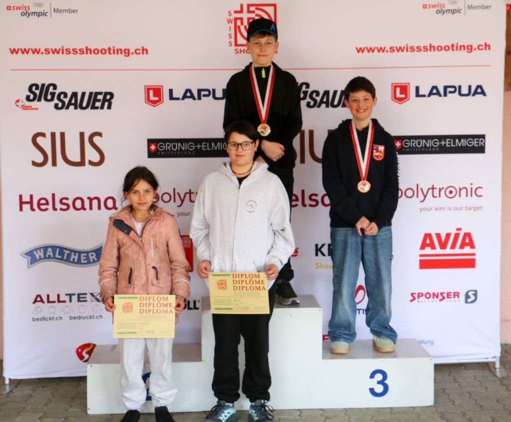 Da misst sich weiter noch der Pistolennachwuchs in den Alterskategorien U15 und U13, jedoch jeweils ohne Finalwettkampf. Der Zürcher Tewin Renfer setzte sich klar mit 375 Punkten bei den U15 durch vor Giannina Alfano, die beim Club aus dem luzernischen Reiden trainiert und im Vorjahr bei den U13 obsiegte. Dritter bei den U15 wird mit Julian Kropf ein Jungschütze aus dem Kanton Bern. Der nimmt gleich die beiden ersten Plätze ein mit Vito Ferrier und Nicole Hofer bei den U13. Dritter wird da David Rauer aus dem aargauischen Fahrwangen.