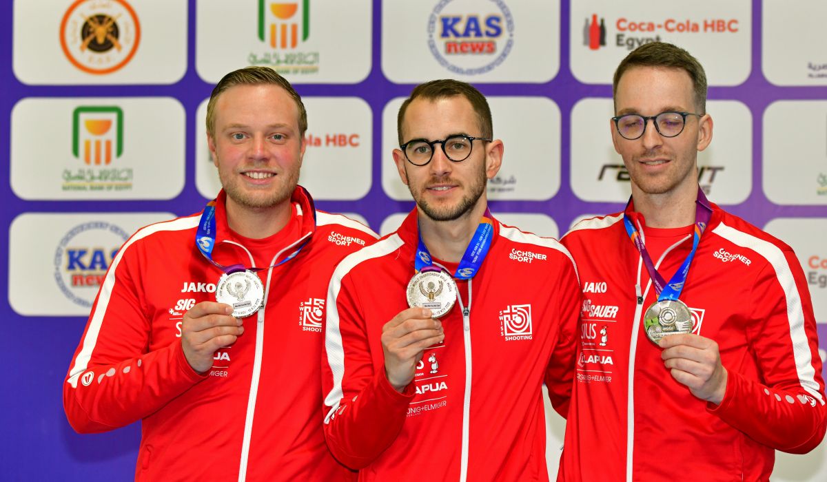 Die Schweizer Gewehrmänner rocken am Freitag die WM Kairo (EGY): Im Liegendwettkampf über 50m holt Jan Lochbihler Silber, Fabio Wyrsch gewinnt Bronze und damit seine erste WM-Einzelmedaille. Zusammen mit Christoph Dürr werden die drei zudem Vize-Weltmeister im Team.