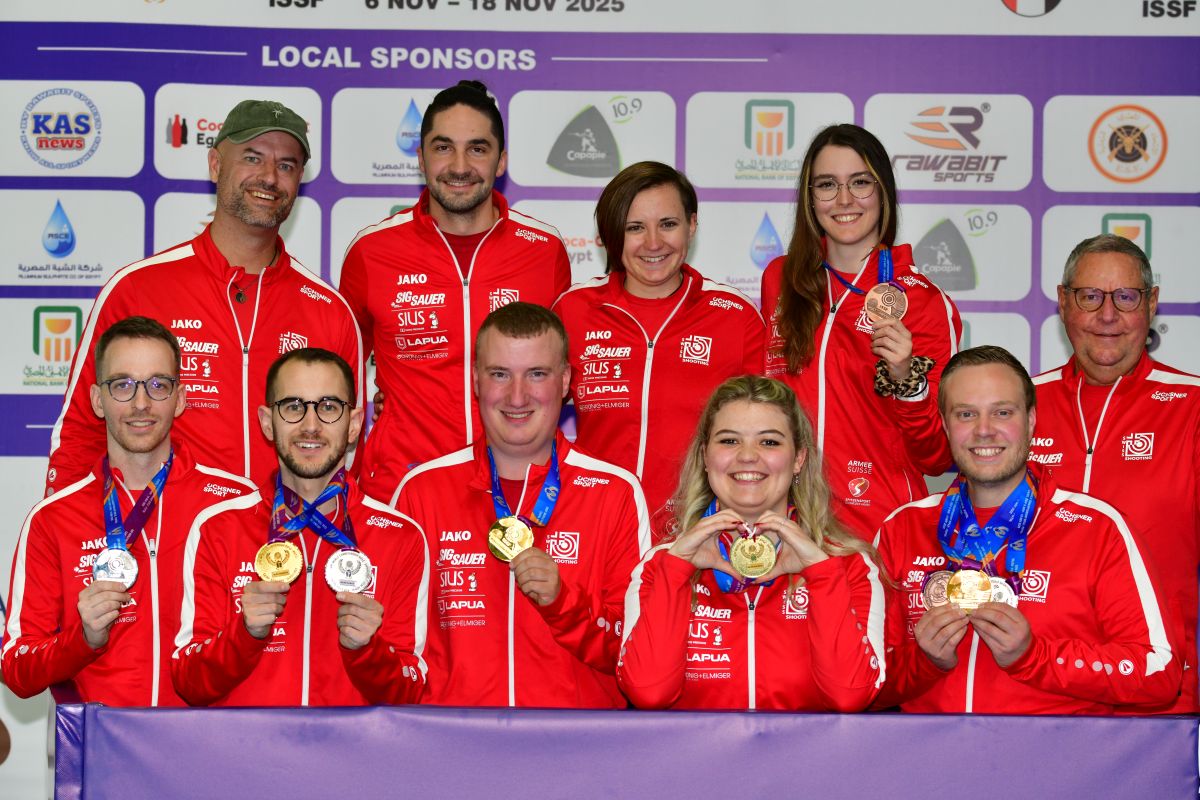 Erstes WM-Gold für die Schweiz: An der Weltmeisterschaft in Kairo (EGY) holt sich Pistolenschütze Adrian Schaub Gold mit der Standardpistole über 25m. Die 300m-Schützen verteidigen zudem ihren WM-Titel von 2023, und zu guter Letzt krönen Marta Szabo und Pascal Bachmann den erfolgreichen Wettkampftag mit jeweils einer Bronzemedaille.