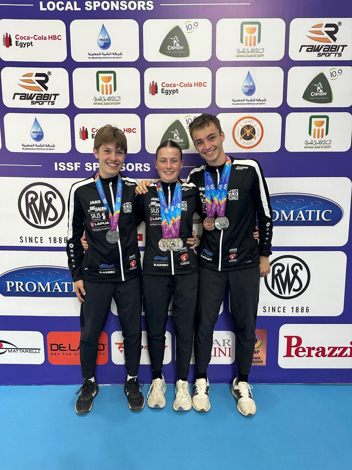 Im Dreistellungswettkampf der Männer holen Fabio Wyrsch, Jan Lochbihler und Christoph Dürr an der WM Kairo (EGY) in der Teamwertung Bronze und damit die erste WM-Medaille für die Schweiz. Die Pistolenschützen Jason Solari und Cédric Grisoni zeigten im Luftpistolenwettkampf solide Leistungen, verpassten jedoch den Einzug in den Final.